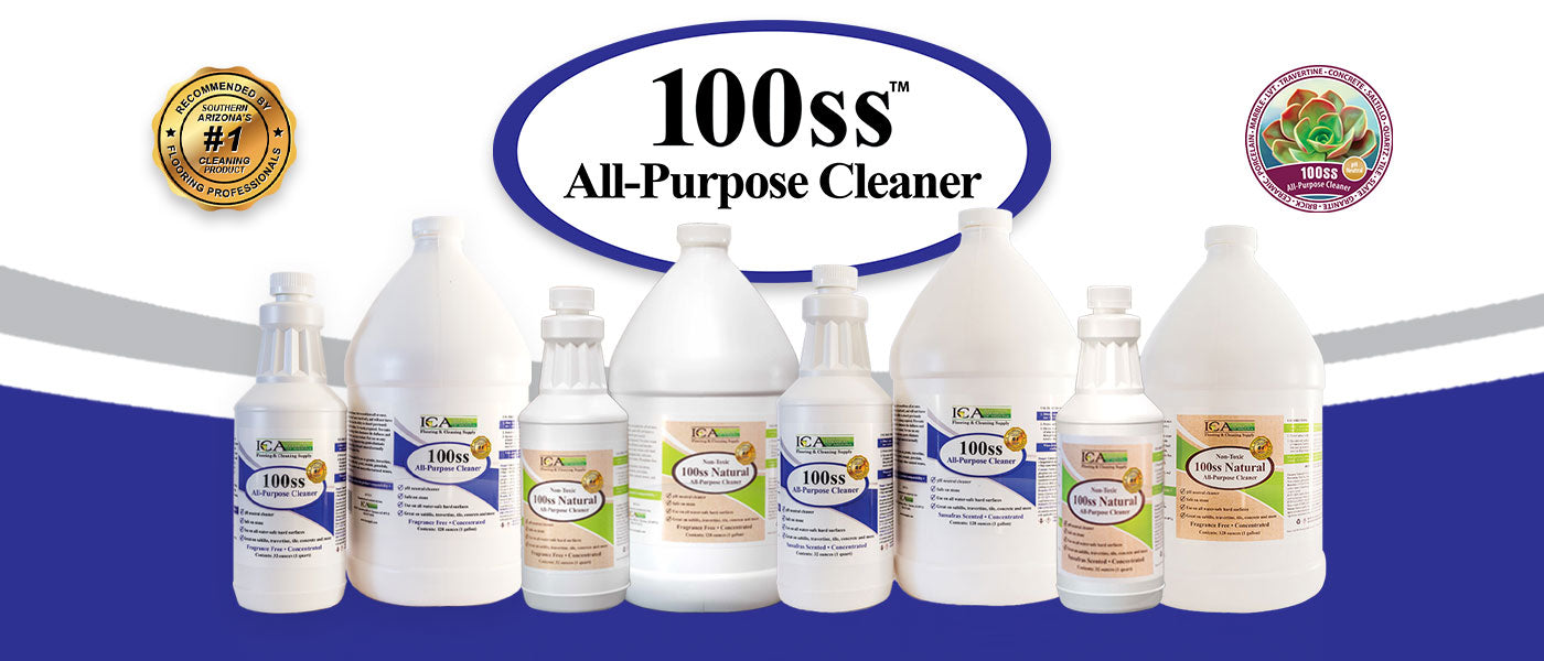 100ss is everyone’s favorite cleaning product. Recommended by professional flooring contractors and cleaning professionals since 1980, 100ss is the most important product needed to keep your home looking clean and beautiful. Specially formulated for hard water, 100ss contains water softeners and tough, dirt-destroying detergents to leave your floors looking and feeling super clean and shiny. Safe to use on all floor types, counter-tops, walls or surfaces that can be cleaned with water.